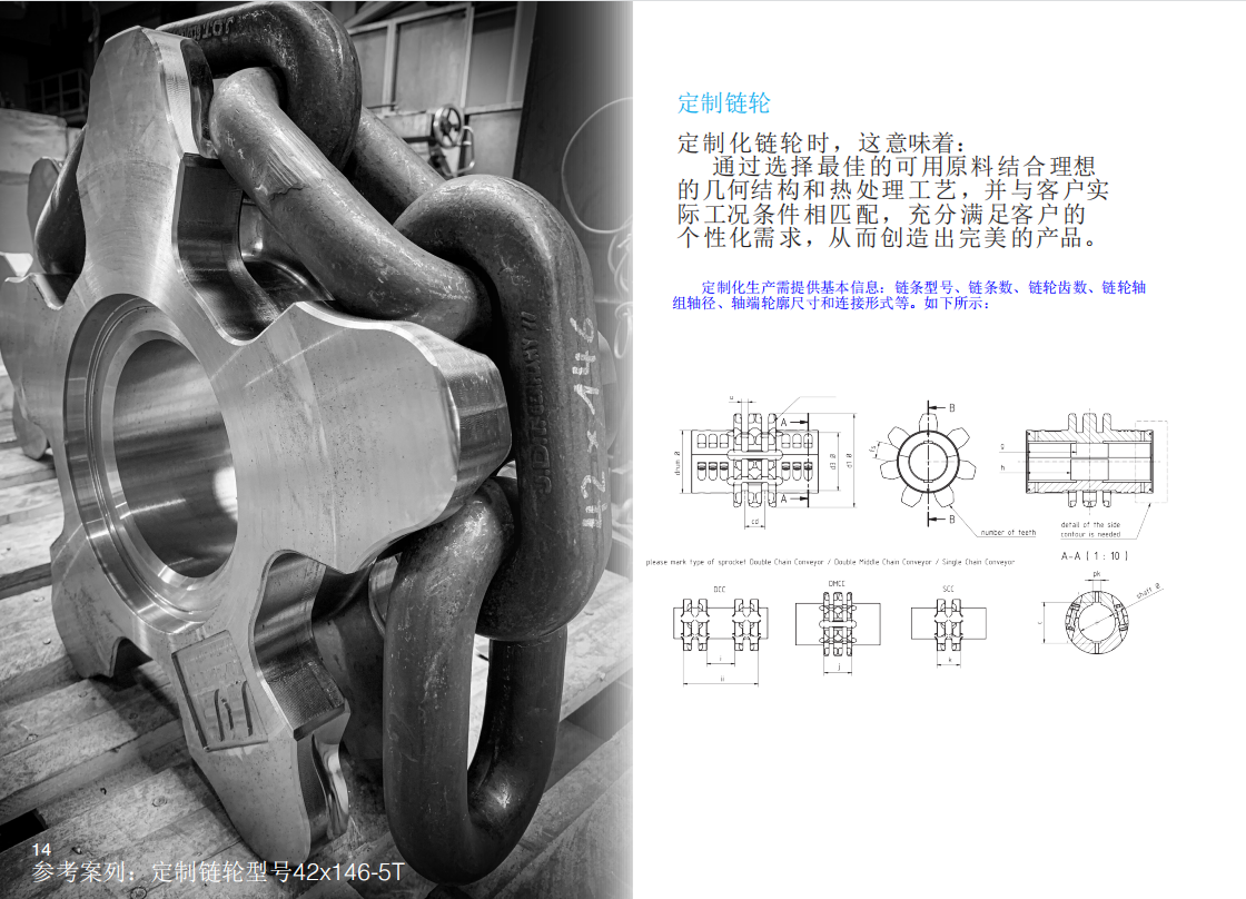 鑒于流水化鏈輪主要通過高標(biāo)準(zhǔn)化生產(chǎn)時,其重要特性常被忽略。并且,不同的客戶有不同的情況,因而,我們?yōu)椴煌蛻糸_發(fā)專內(nèi)的鏈論產(chǎn)品。考慮到被輸送物料的化學(xué)成分和結(jié)構(gòu)成分、礦區(qū)的工況以及整個輸送系統(tǒng)更高層次的集成,客戶需要個性化定品,而不是一個完美的標(biāo)準(zhǔn)化產(chǎn)品。同時,根據(jù)特殊鏈條使用中的幾何結(jié)構(gòu),我們開發(fā)出了完美的齒對。